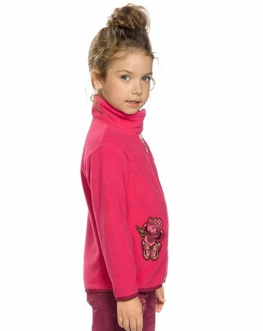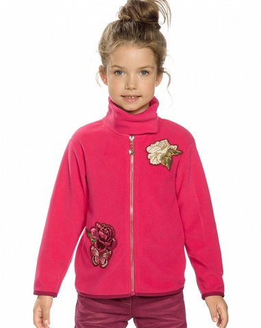 Куртка для девочек. Куртка из флиса; воротник-стойка, застёжка на липе; по низу изделия и рукавов эластичный пайпинг; нашивки; "золотой" пуллер. Состав: 100%полиэстер