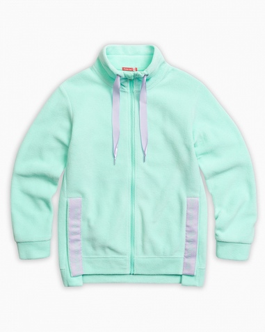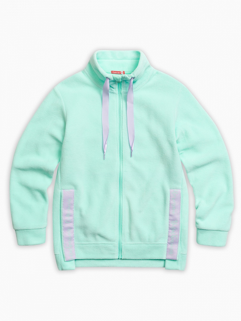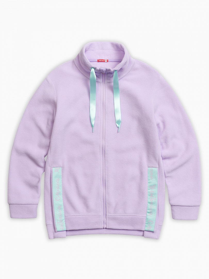 Куртка для девочек. Новинка: прямой, свободный силуэт; спущенное плечо; воротник - стойка декорирован атласной тесьмой; боковой шов изделия слегка переведен вперед; в нижней части шва разрез, который декорирован настроченной тесьмой с текстом. Состав: 100%полиэстер