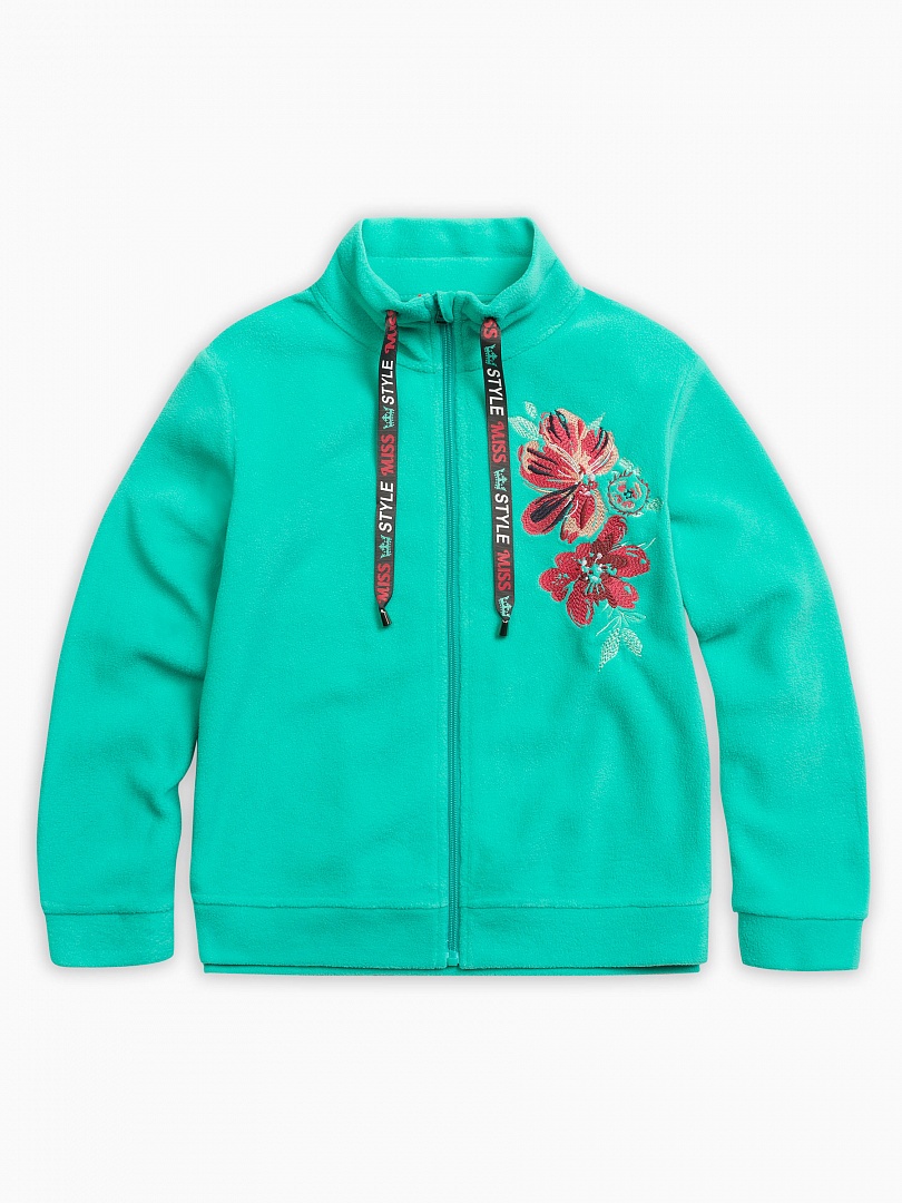 Куртка для девочек. Новинка: более увеличенный объем по линии груди и низа; воротник-стойка c регулирующими объем принтованными репсовыми лентами; по низу изделия манжета с перепадом длины переда и спинки с разрезами по бокам; вышивка с внутренней стороны которой - водорастворимая пленка. Состав: 100%полиэстер