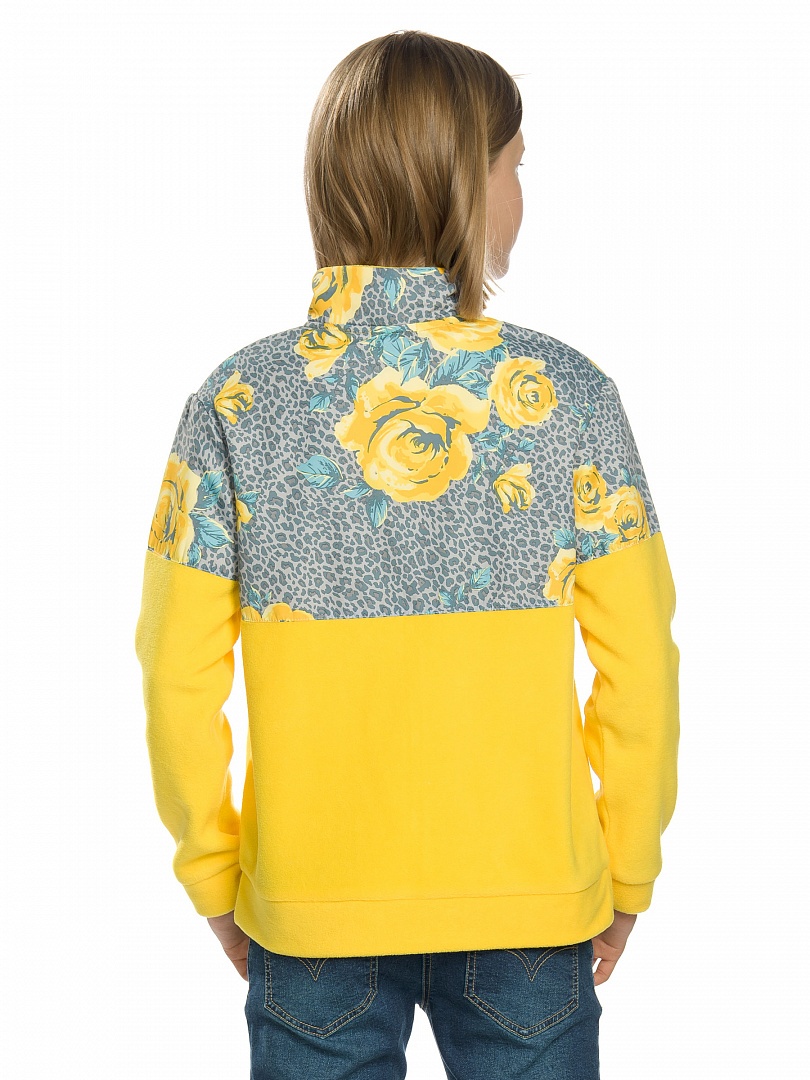 Куртка для девочек. Куртка в сочетание двух фактур - нового, более облегчённого флиса и плащевки в алловер-принт; свободного объёма; со спущенным плечом мягкой формы; по низу рукавов и изделия притачная манжета с разрезами в боковых швах. Состав: 100%полиэстер