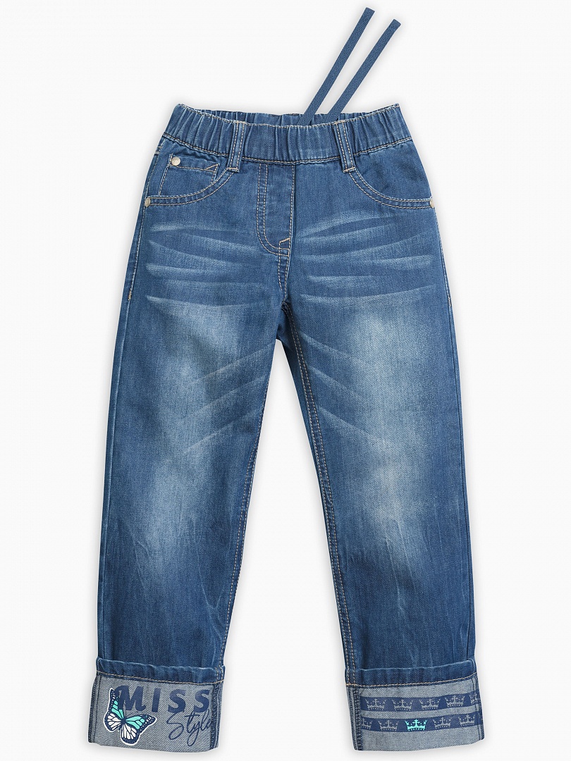 Джинсы для девочек. Джинсы прямого, свободного силуэта; отвороты по низу. Состав: 100%хлопок
