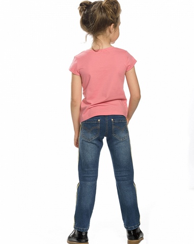 Брюки для девочек. Новинка! Утеплённые джинсы прямого силуэта из эластичного денима с начёсом; металлическая фурнитура; по боковым швам настрочена эластичная трикотажная тесьма с золотым блеском; пояс из рибаны с регулировкой ширины. Состав: 68%хлопок 30%полиэстер 2%эластан