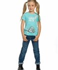 Брюки для девочек. Утеплённые джинсы прямого силуэта из эластичного денима с начёсом; металлическая фурнитура; пояс из рибаны с регулировкой ширины. Состав: 68%хлопок 30%полиэстер 2%эластан
