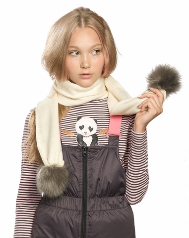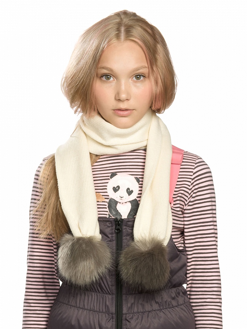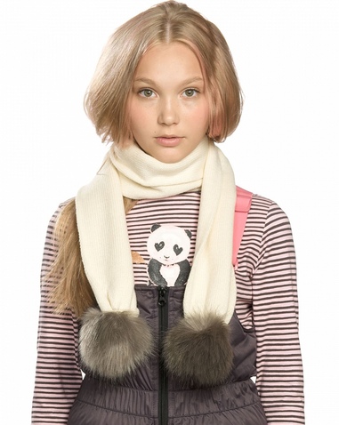 Шарф для девочек. Вязаный шарф, на концах изделия помпоны из искусственного меха. Состав: 100%акрил