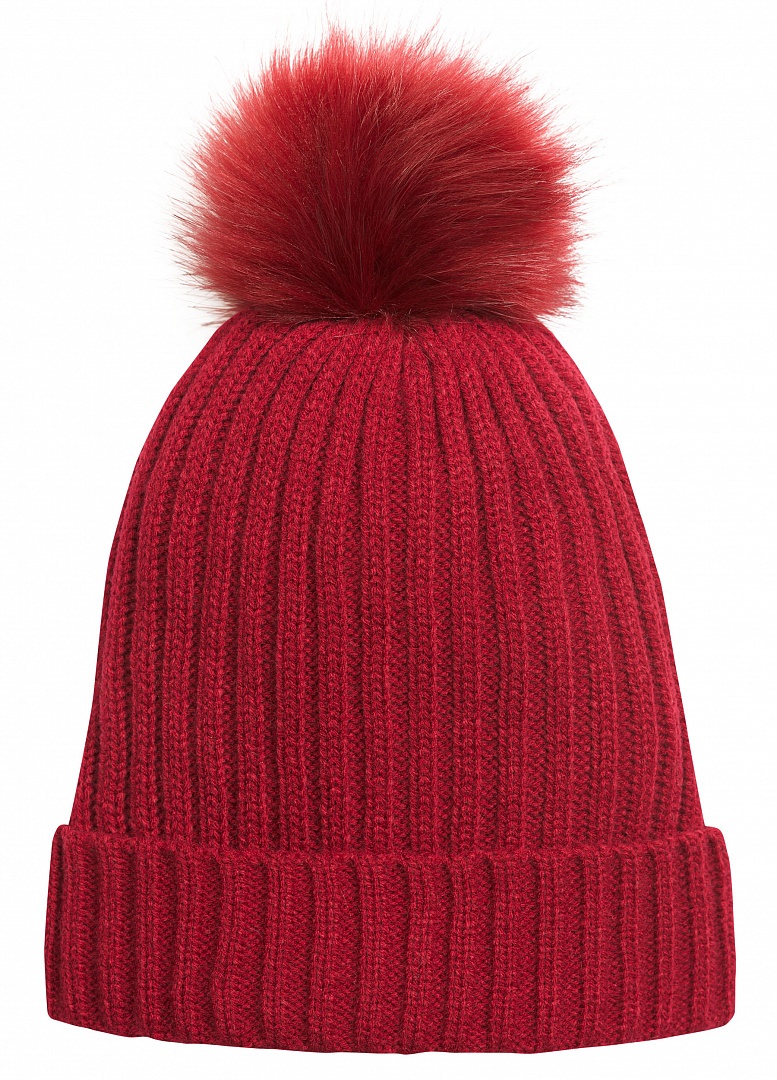 Шапка вязаная на подкладе из флиса; декор- помпон из искусственного меха. Состав: 100%акрил, подклад: 100%полиэстер