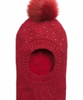 Шапка вязаная - капор; декоративные стразы, помпоны из искусственного меха. Состав: 100%акрил, подклад: 100%полиэстер