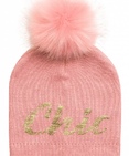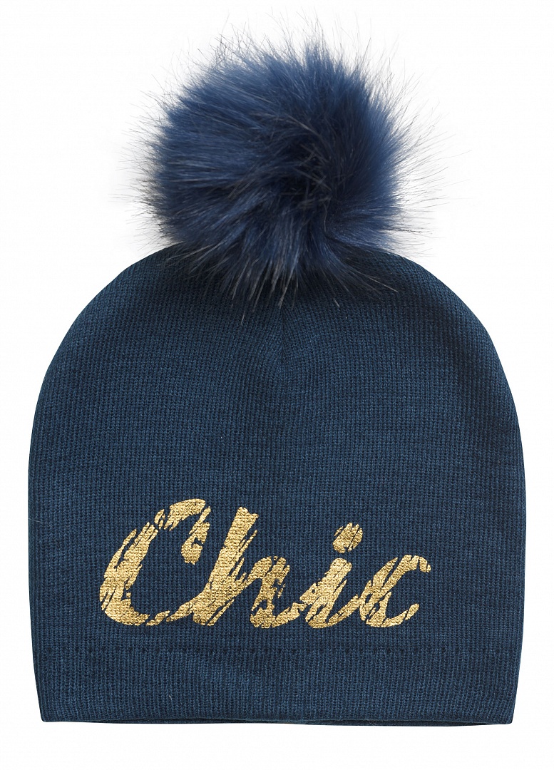 Шапка для девочек. Подклад вязаный, помпон из искусственного меха, фойл-принт блестящая фольга - прочно и красиво! Состав: 100%акрил