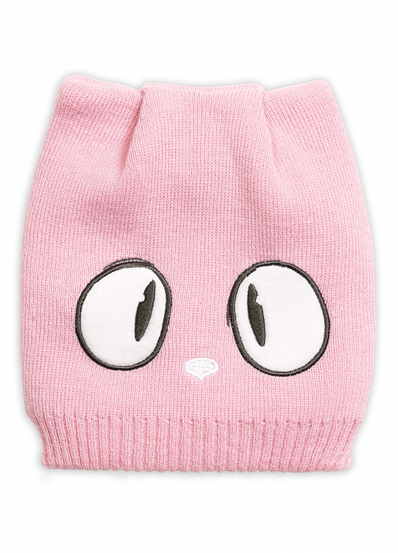 Шапка для девочек. Вязаный подклад, аппликация в виде глазок. Состав: 100%акрил