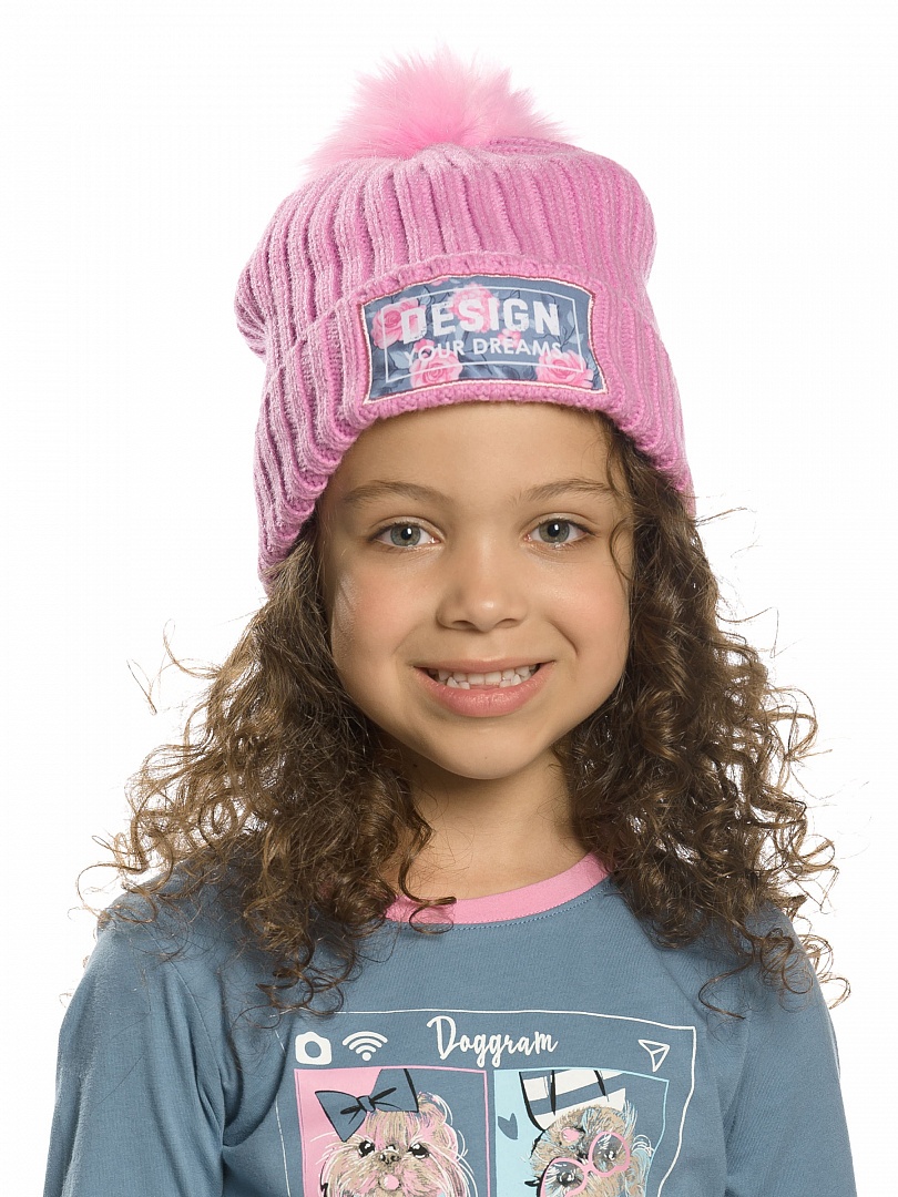 Шапка для девочек. Вязаная шапка на подкладе из флиса, с отворотом. На отвороте нашивка с надписью "Дизайн твоей мечты". Состав: 100%акрил, подклад: 100%полиэстер
