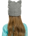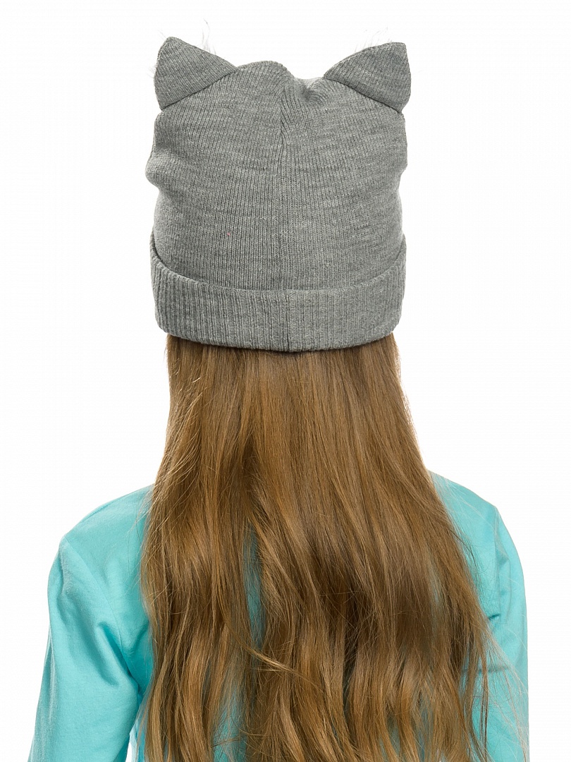 Шапка для девочек. Шапка двойной вязки с отворотом; вид вязки риб 3*3. Вышивка в виде кошачьей мордочки; декоративные ушки с искусственным мехом. Состав: 100%акрил, подклад: 100%акрил