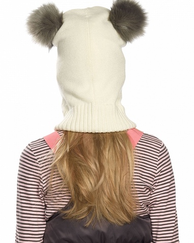 Шапка для девочек. Вязаная шапка-шлем; два декоративных помпона из искусственного меха имитируют ушки панды; нашивка. Состав: 100%акрил, подклад: 100%полиэстер
