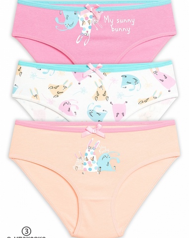 Трусики-слипы для девочек. Комплект из 3-х трусиков. Состав: низ: 93%хлопок 7%эластан, низ2: 93%хлопок 7%эластан, низ:3 93%хлопок 7%эластан