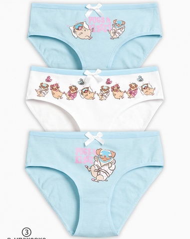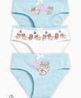 Трусики-слипы для девочек. Комплект из 3-х трусиков. Цвета: голубой и белый. По талии трусики декорированы контрастным атласным бантиком. Центральный принт. Состав: низ: 93%хлопок 7%эластан, низ2: 93%хлопок 7%эластан, низ:3 93%хлопок 7%эластан