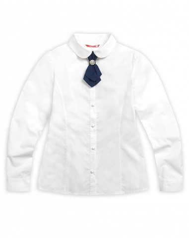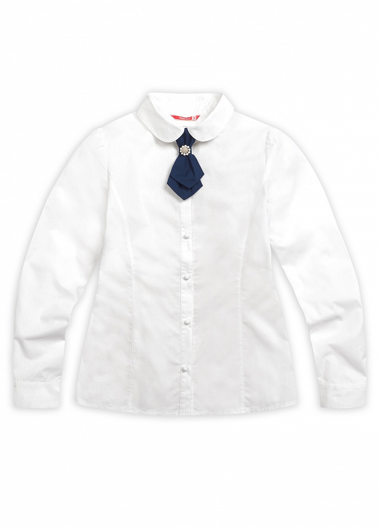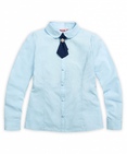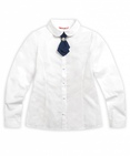 Блузка для девочек. Классический полуприлегающий силуэт с рельефами по переду и спинке. Длинный рукав с лёгкой сборкой по окату. Воротник с закруглёнными уголками. Стильный акцент - съёмный декоративный галстук, который украшен красивой пуговицей. Коллекция - школа. Состав: 60%хлопок 40%полиэстер