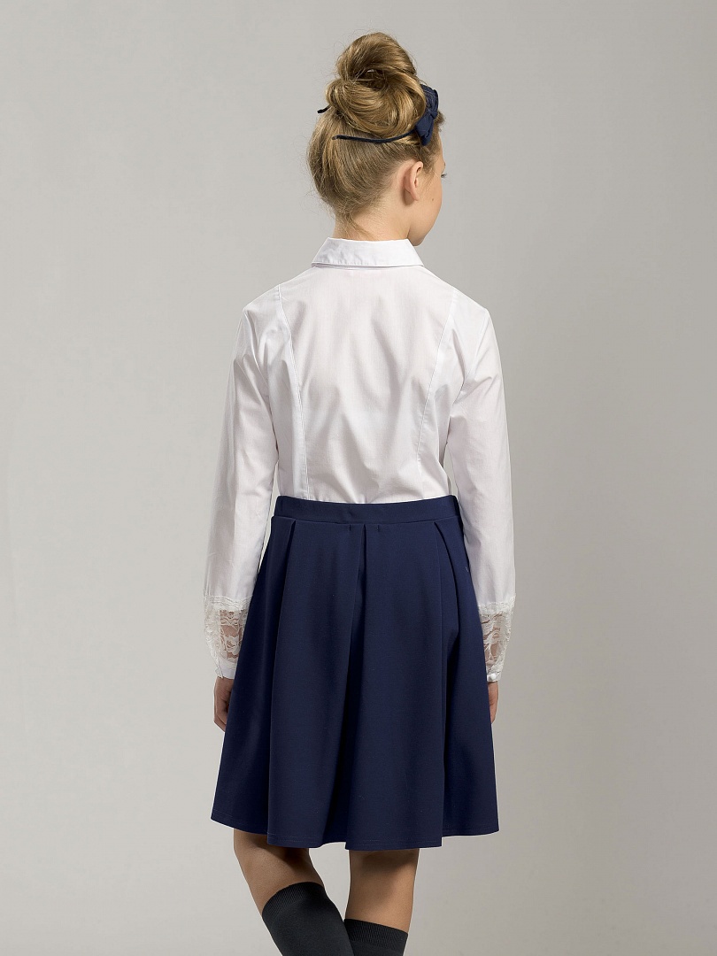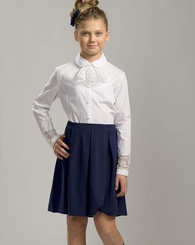 Классическая блузка. По низу рукава расположена вставка из кружева с узкой изящной манжетой. Съёмный декоративный элемент в виде жабо из кружева в два слоя и бархатного бантика белого цвета. Состав: 60%хлопок 40%полиэстер, вставка: 100%полиэстер