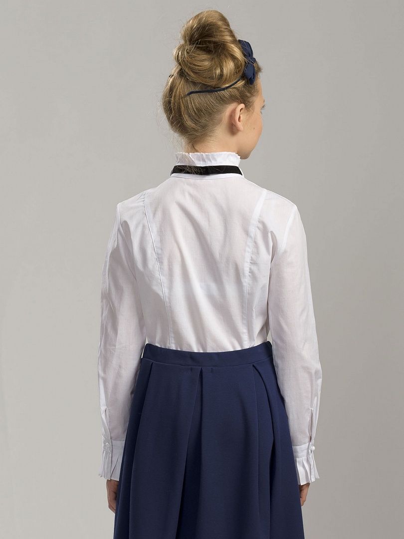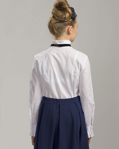 Классическая блузка. Отличительные особенности модели — съемный декор, декоративные детали стойки и манжет рукавов, оформленные в вертикально заложенные односторонние складки. Состав: 60%хлопок 40%полиэстер