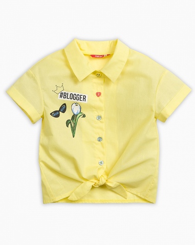 Блузка для девочек. Новинка кроя! Свободная батистовая блузка с подбортом, переходящим в завязки по низу. Разноцветные пуговки разных форм! Рукав втачной с отворотом и закрепкой по краям. Имитация нашивки - прочный мягкий soft-принт, не резиновый. Состав: 100%хлопок
