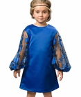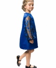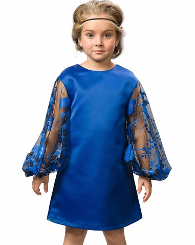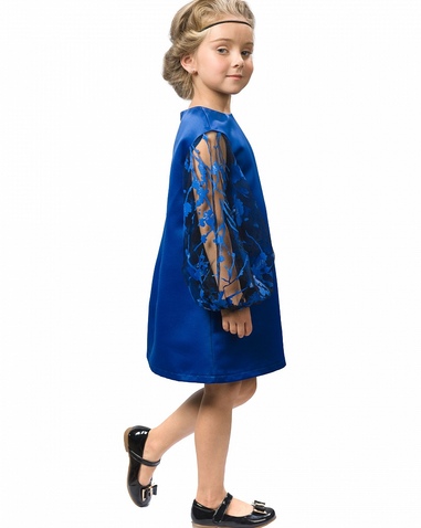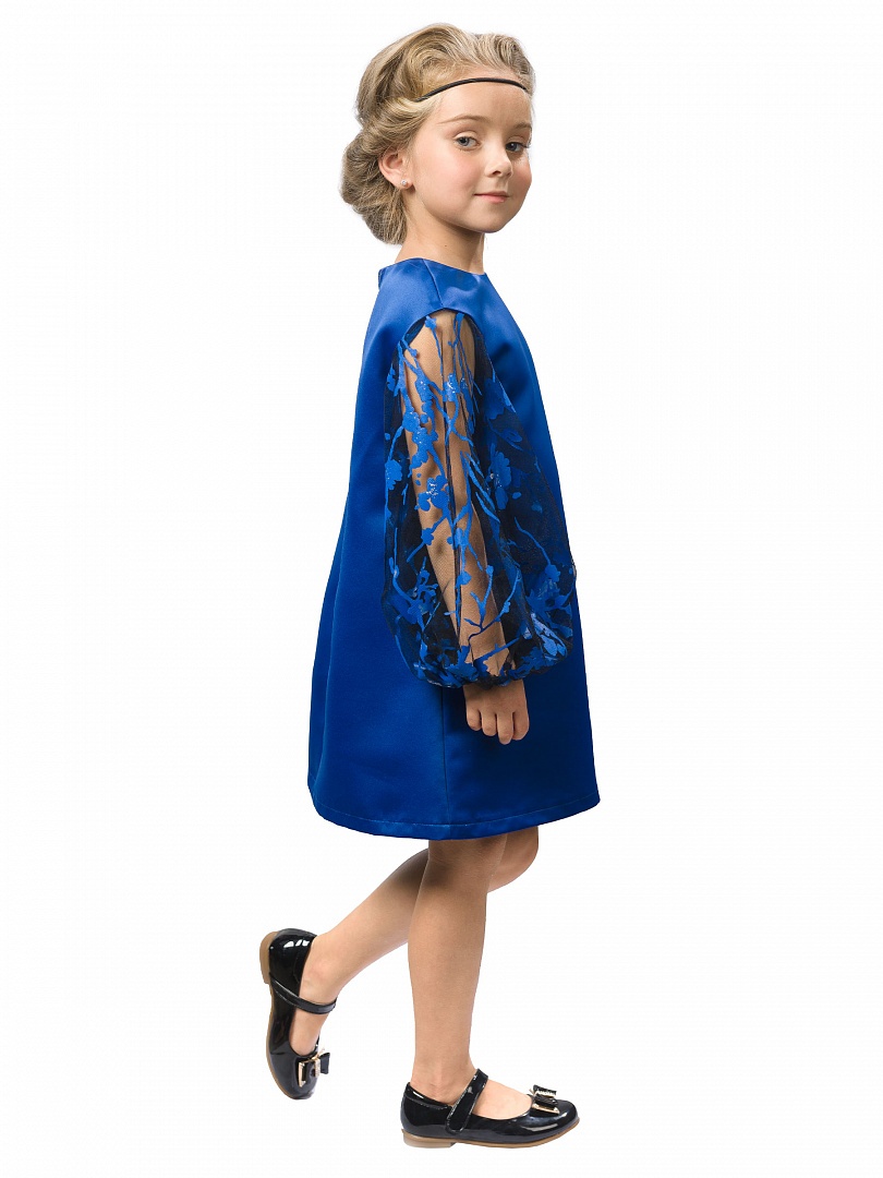 Платье для девочек. Платье А-силуэта из плотной ткани с сатиновым блеском, хлопчатобумажная подкладка. Слегка спущенная линия плеча. Фишка изделия! Объёмные и лёгкие рукава фантазийной формы из декоративной сетки с цветочным принтом с серебряным блеском. По низу рукавов эластичная тесьма. Для комфорта в носке внутренняя окантовка проймы выполнена из хлопка. Застёжка по спинке на потайную молнию. Состав: 100%полиэстер, вставка: 100%нейлон, подклад: 100%хлопок