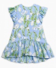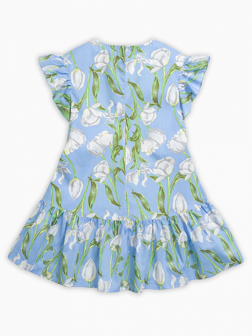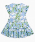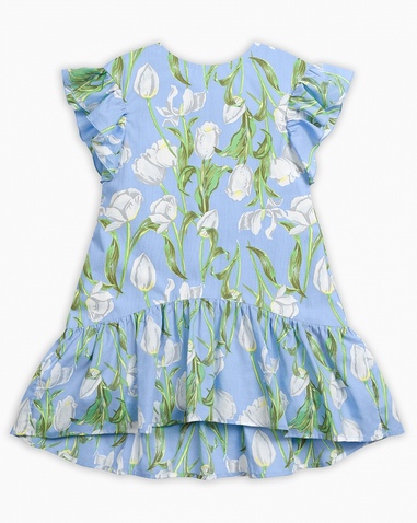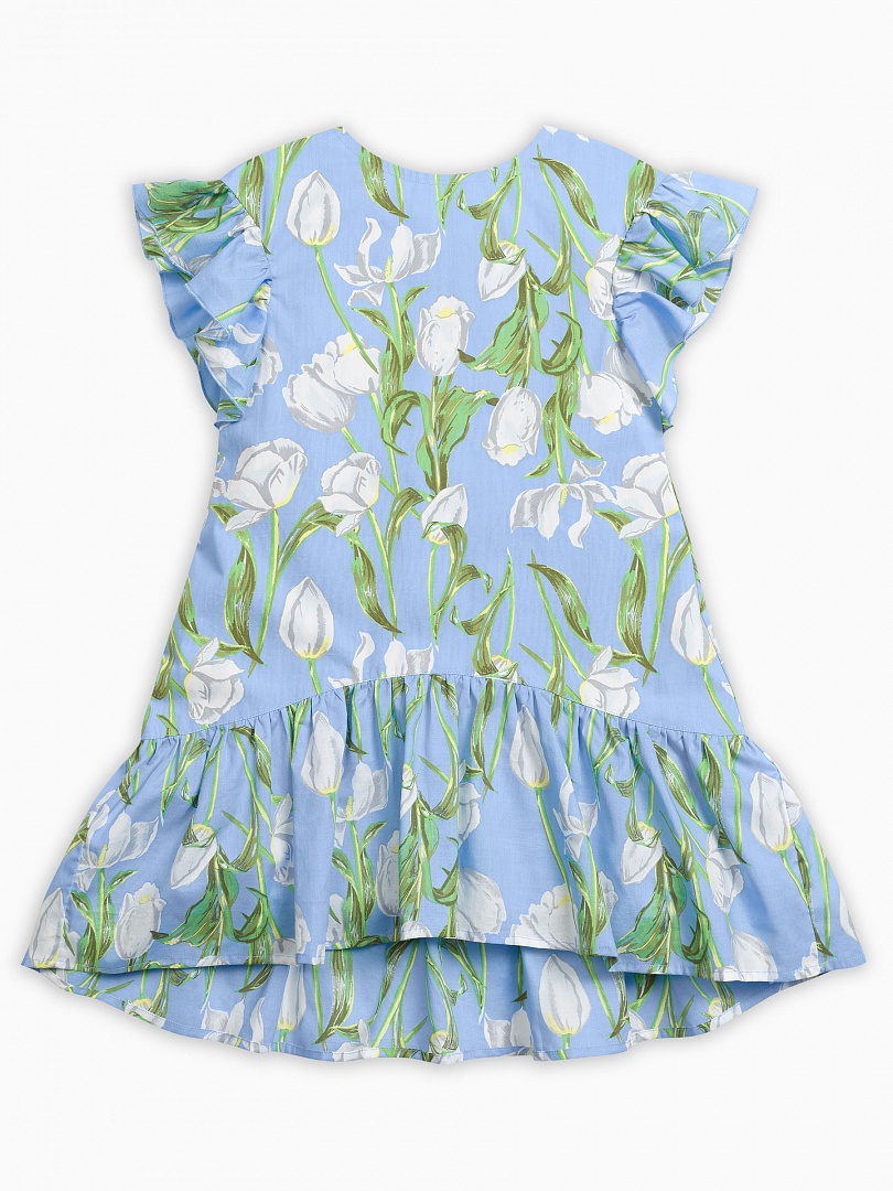Платье для девочек. Новинка кроя! Трапеция со спущенным плечом и рукавом- воланом. По низу фигурная линия притачивания волана и перепад спинки-стройнит фигуру. Имитация нашивки - мягкий стойкий soft-принт, не резиновый. Застежка на пуговку по горловине на спинке. Перед и спинка из более плотной ткани, а воланы- из тонкого легкого батиста. Состав: 100%хлопок
