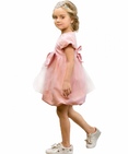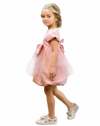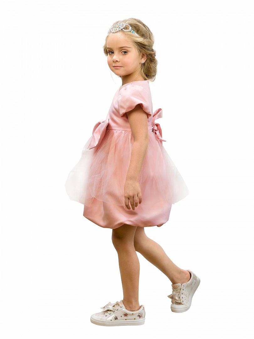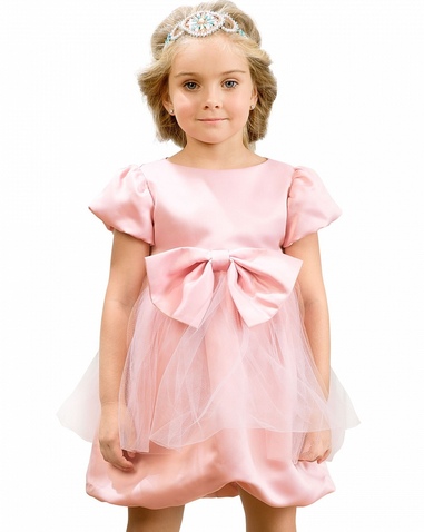 Платье для девочек. Новая плотная ткань с благородным сатиновым блеском! Новый силуэт юбки мягкий баллон сверху декорирован легкой юбкой из сетки в тон основной ткани, хлопчатобумажная подкладка. Рукав-фонарик, перед платья декорирован объёмным бантом из основной ткани, по талии расположен завязывающийся пояс, который позволяет регулировать ширину изделия. Застёжка по спинке на потайную молнию. Состав: 100%полиэстер, подклад: 100%хлопок