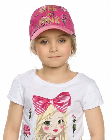 Кепка для девочек. Застёжка с регулировкой размера; перевод принта "жизнь в розовом" Состав: 100%хлопок