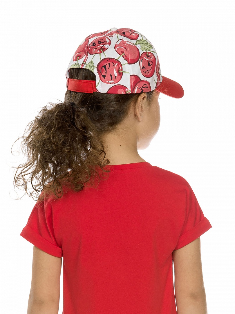 Кепка для девочек с сочным принтом-вишнями. Застёжка на липучке с регулировкой размера. Состав: 100%хлопок