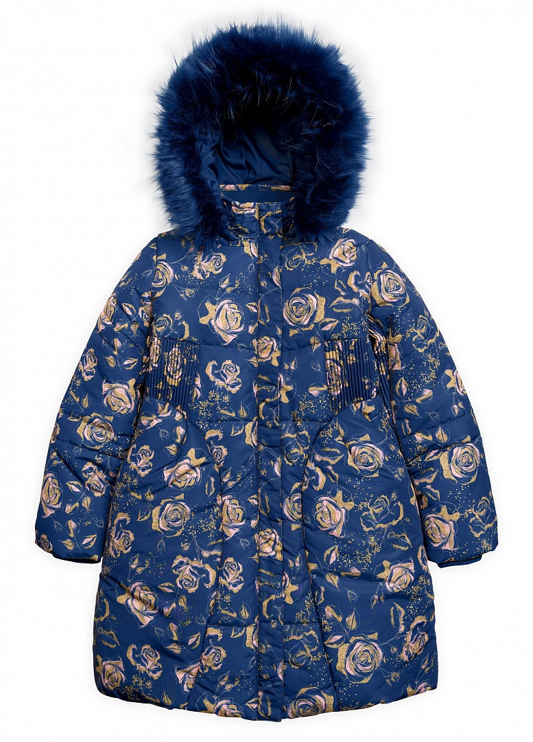 Пальто для девочек. Рекомендованный температурный режим: не ниже -15°С. Улучшенные лекала! Ткань с водоотталкивающей пропиткой, наполнитель - мягкий синтетический пух. Силуэт приталенный. Застежка на тесьму-молнию, наружная планка на кнопках. Воротник-стойка с хлопковым рибом с внутренней стороны, капюшон не отстегивается, меховая опушка отстегивается (на замке). Внутренние ветрозащитные манжеты рукавов - из риба. Состав: 100%полиэстер, подклад: 100%полиэстер, утеплитель: 100%полиэстер