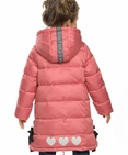 Пальто для девочек. Рекомендуемый температурный режим: не ниже -25°С. Зимнее удлинённое пальто. Утеплитель синтепух. Флисовый подклад. Двухшовный неотстегивающийся капюшон с регулировкой объема. Курточная ткань с двусторонним водоотталкивающим покрытием. Широкая ветрозащитная планка. Центральная молния с двумя слайдерами. В боковых швах разрезы, декорированные бантами из киперной ленты. Боковые карманы на кнопках, с декоративной принтованной тесьмой на клапанах. Внутренняя манжета по низу рукава из рибаны. Световозвращающие элементы. Состав: 100%полиэстер, подклад: 100%полиэстер, утеплитель: экопух 100%полиэстер