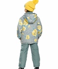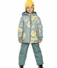 Комплект для девочек: куртка и полукомбинезон. Рекомендуемый температурный режим: не ниже -15°С. Комплект осенний на синтепоне. Куртка осенняя на синтепоне. Округлые формы отстрочки подчеркивают силуэт. Двухшовный неотстегивающийся капюшон с регулировкой объема, с декоративным рибом по краю. Воротник изнутри отделан рибаной. Курточная ткань с двусторонним водоотталкивающим покрытием. Объем по низу регулируется резиной со стопперами. Боковые карманы на молнии, с ограничителями. Пуллер из декоративной принтованной тесьмы с крупными кольцами. Фурнитура с эффектом серебра, рибана и шпульная резина — с люрексом. Манжета из декоративного риба по низу рукава. Низ: Полукомбинезон с высокой спинкой. В боковых швах вставки из рибаны для лучшей посадки по фигуре. Неотстегивающиеся лямки из цветной резины с регулировкой по длине. Антискользящая резинка на муфтах брюк. Световозвращающие элементы. Состав: верх: 100%полиэстер, подклад: 65%хлопок 35%полиэстер, подклад рукавов: 100%полиэстер, утеплитель: 100%полиэстер, низ: 100%полиэстер, подклад: 100%полиэстер, утеплитель: 100%полиэстер