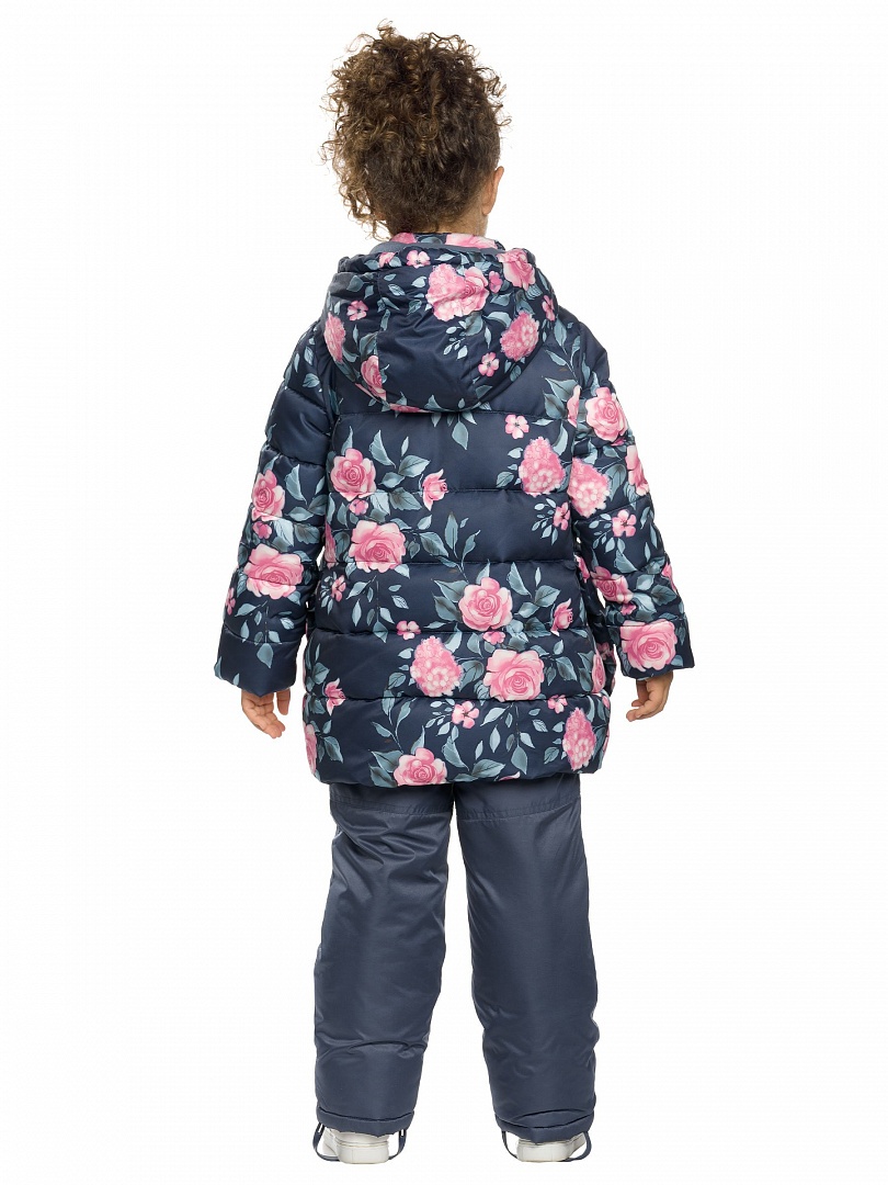 Комплект для девочек: куртка и полукомбинезон. Рекомендуемый температурный режим: не ниже -25°С. Утепленный зимний комплект. Куртка: силуэт «легкая трапеция». Перепад длин между спинкой и передом. Утеплитель синтепух. Флисовый подклад. Двухшовный неотстегивающийся капюшон с регулировкой объема. Курточная ткань с двусторонним водоотталкивающим покрытием. Широкая ветрозащитная планка. Боковые карманы с объемными клапанами. Внутренняя манжета по низу рукава из рибаны. Внутренний шнур со стоппером регулирует объем куртки по низу. Низ: Полукомбинезон с высокой грудкой и спинкой. Резина по талии. Неотстегивающиеся лямки из резины с принтом, с регулировкой по длине. Колени и верх задней части брюк усилен более плотной тканью. Антискользящая резинка на муфтах брюк. Съемные силиконовые штрипки. Световозвращающие элементы. Состав: верх: 100%полиэстер, подклад: 100%полиэстер, утеплитель: экопух 100%полиэстер, низ: 100%полиэстер, вставка: 100%нейлон, подклад: 100%полиэстер, утеплитель: 100%полиэстер