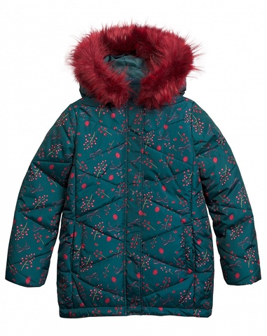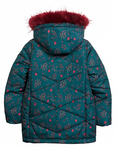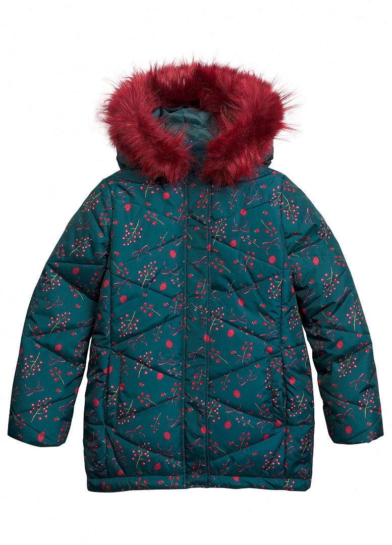 Куртка для девочек. Рекомендованный температурный режим: не ниже -15°С. Новинка! Куртка умеренного объёма, с рельефами по переду и спинке, создающими интересный силуэт, сужающийся от линии бедер к низу. Впервые на деталях переда, спинки и рукавах используется стежка в виде крупных ромбов. Меховая опушка съемная. Трикотажный воротник из рибаны. Регулировка объема по низу изделия. Карманы в рельефных швах. Внутренняя манжета по низу рукава из рибаны. Состав: 100%полиэстер, подклад: 100%полиэстер, утеплитель: 100%полиэстер