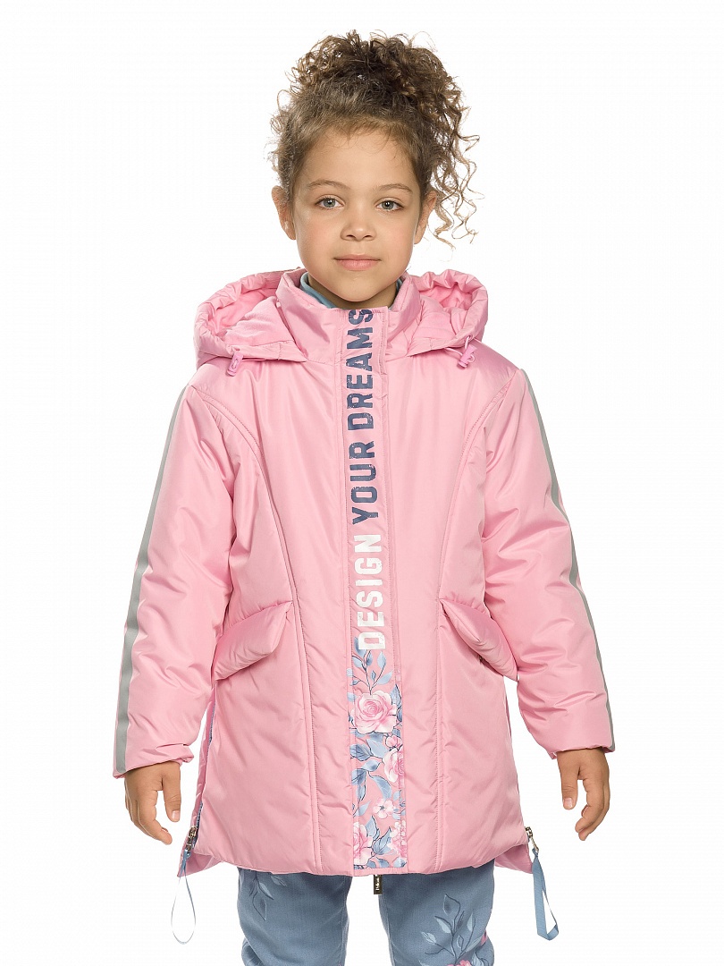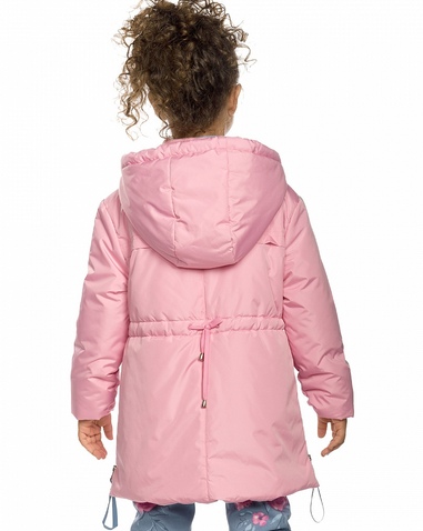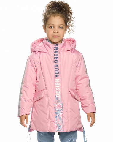 Куртка для девочек. Рекомендуемый температурный режим: не ниже -15°С. Осенняя удлиненная куртка-парка на синтепоне. Двухшовный неотстегивающийся капюшон с регулировкой объема. Воротник изнутри отделан рибаной. Курточная ткань с двусторонним водоотталкивающим покрытием. Широкая ветрозащитная планка с принтом. По спинке имитация кокетки, с утяжкой на декоративный шнурок. В боковых швах расположены функциональные застежки-молнии с пуллерами из тесьмы. Боковые карманы с объемными клапанами. Внутренняя манжета по низу рукава из рибаны. Световозвращающие элементы. Состав: 100%полиэстер, подклад: 60%хлопок 40%полиэстер, подклад рукавов: 100%полиэстер, утеплитель: 100%полиэстер