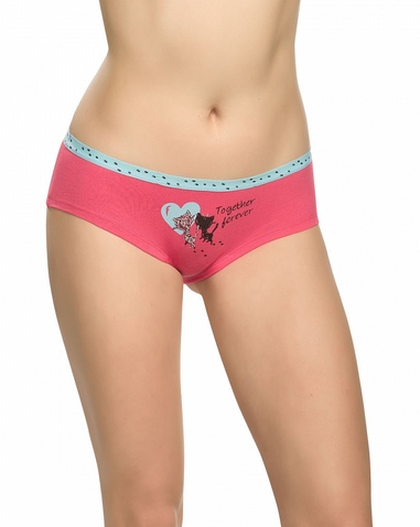 Женские трусики-шортики. Низкая посадка. Центральный принт влюблённые котики и надпись "Together forever", пер. "Вместе навсегда". По талии эластик, принтованный следами кошачьих лапок. Состав: 93%хлопок 7%эластан