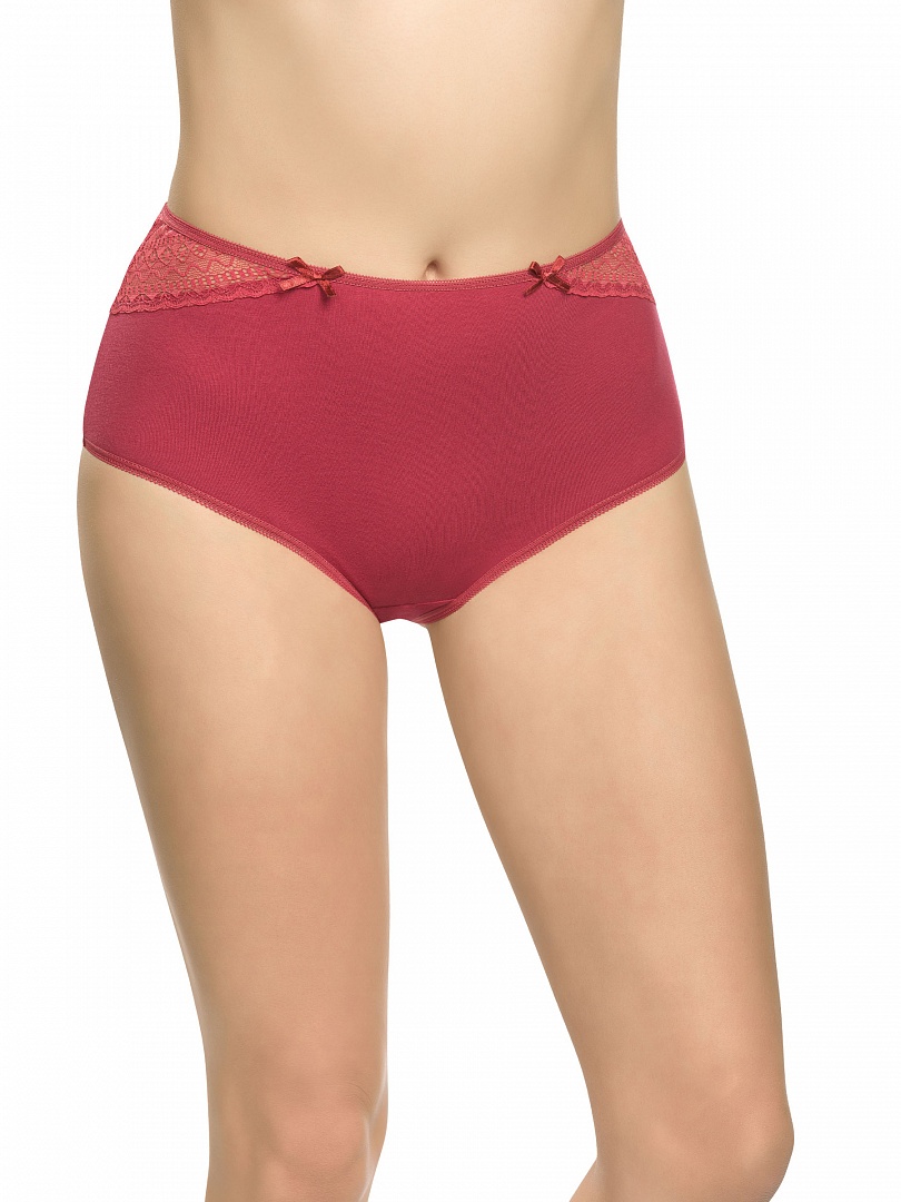 Женские трусики-шортики. Высокая посадка. Сочетание хлопковой ткани и кружева. Кружевные вставки начинаются на полочке и уходят в красивый треугольник на спинке изделия. По талии эластик с фестонным краем, декор в виде двух атласных бантиков. По ноге обработка эластиком с фестонным краем сверху. Состав: 93%хлопок 7%эластан, вставка: 90%полиамид 10%эластан