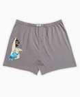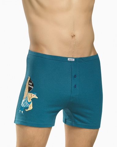 Мужские трусы-боксеры. Принт на боковой части изделия: моряк-силач и надпись "100% мужик".Гульфик на пуговицах на передней части изделия. Состав: 100%хлопок