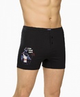 Мужские трусы-боксеры. На боковой части изделия прикольный принт: бык в тоге и надпись "Кто твой бог?". Гульфик на двух пуговицах. Состав: 100%хлопок