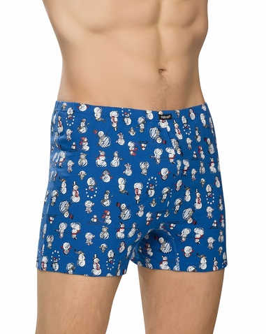 Мужские трусы-боксеры. Алловер принт в виде снеговиков. Гульфик на двух пуговицах. Состав: 100%хлопок