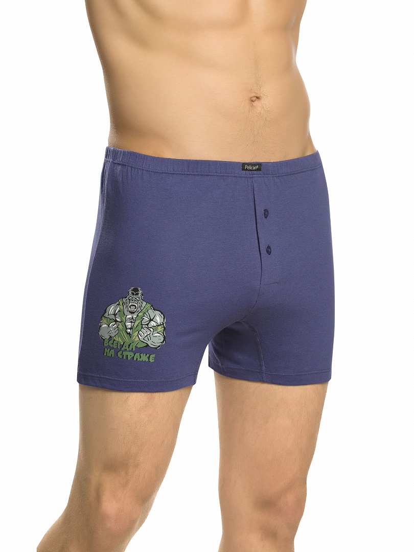 Мужские трусы-боксеры. Стойкий рабберный принт на боковой части изделия. Гульфик на 2-х пуговицах. Состав: 100%хлопок