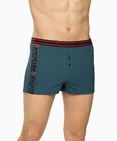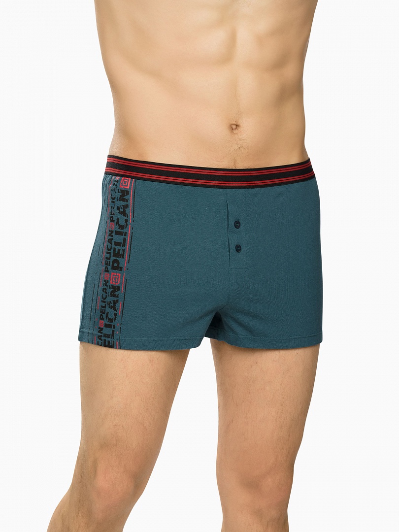 Мужские трусы-боксеры в спортивном стиле. Текстовый принт на боковой части изделия. Широкая тканая двухцветная резинка по талии. Гульфик на двух пуговицах. Состав: 100%хлопок