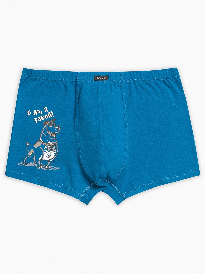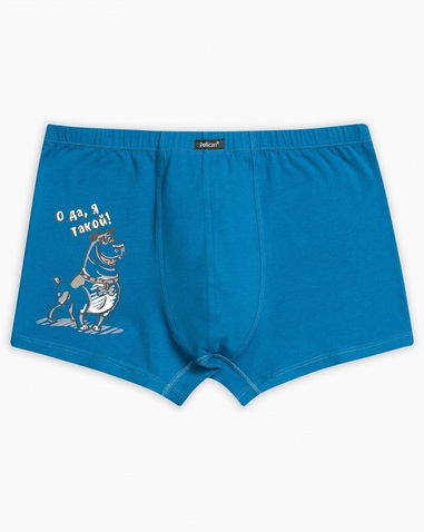 Классические мужские трусы-шорты. Средняя посадка. На боковой части изделия прикольный принт: отрисованный в скетчевом стиле заигрывающий бульдог и надпись "О да, я такой!". Состав: 93%хлопок 7%эластан