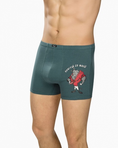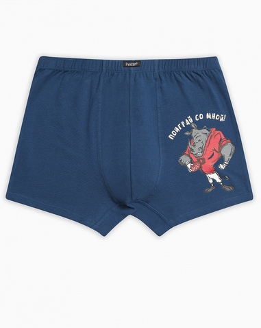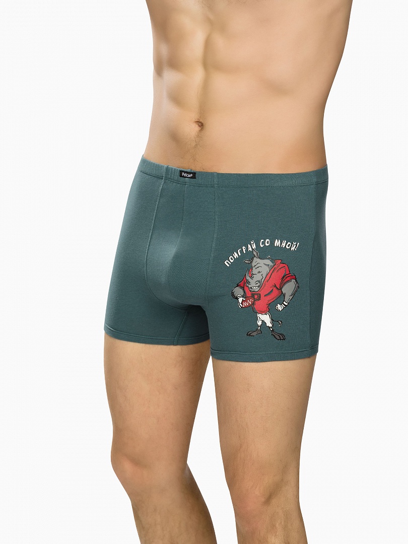 Классические мужские трусы-шорты. Средняя посадка. На боковой части изделия прикольный принт: отрисованный в векторной графике носорог и надпись "Поиграй со мной!". Состав: 93%хлопок 7%эластан