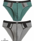 Классические мужские трусы-слипы. Высокая посадка. В комплекте 2 изделия. По центру изделия декор строчкой 2 needle decoration. На боковых частях изделия текстовый принт "Hardcore". По талии широкий эластик из пайпинга. Состав: 93%хлопок 7%эластан