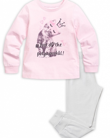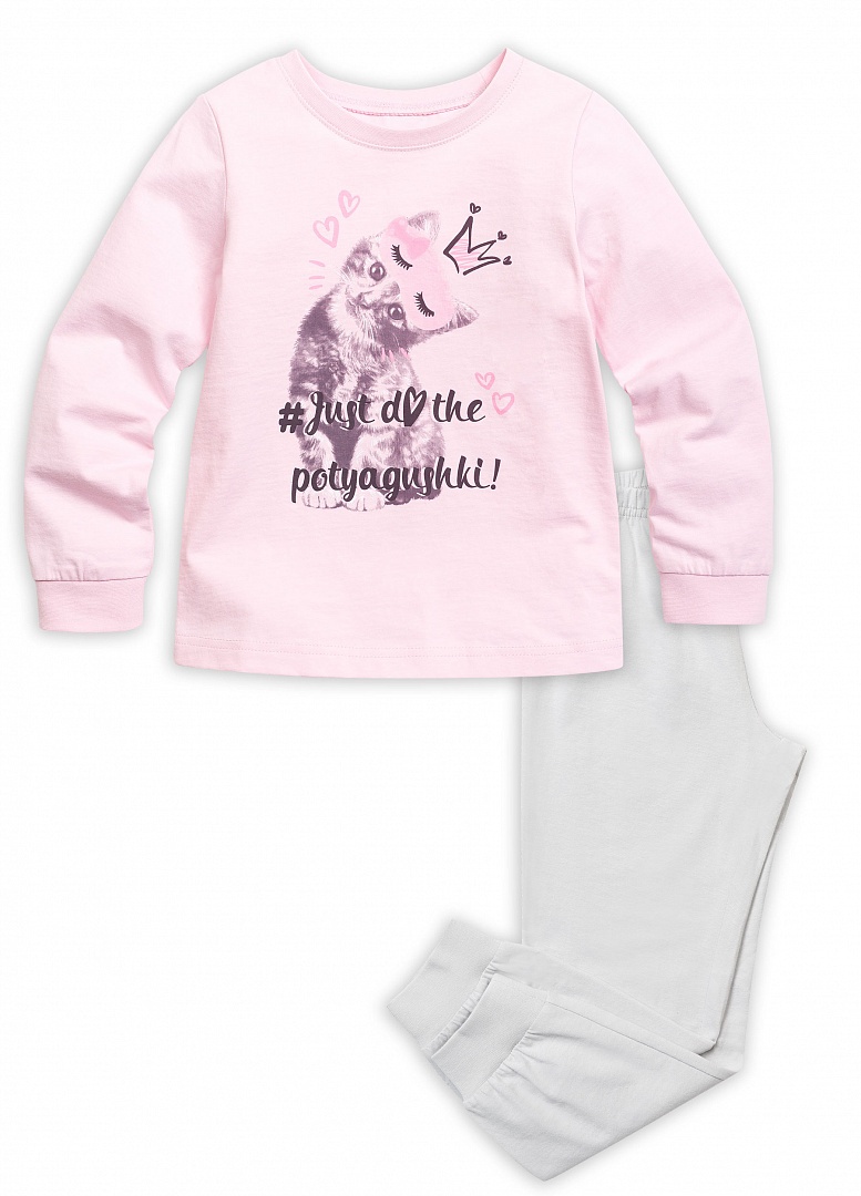 Пижама для девочек: джемпер и брюки. На джемпере центральный принт милый инстаграмный котёнок. Однотонные брюки, манжеты по низу брючин. Состав: верх: 100%хлопок, низ: 100%хлопок